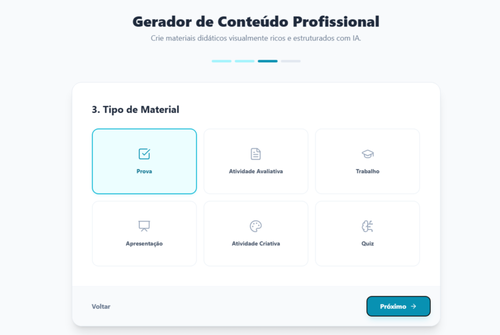 Gere atividades, provas, quizzes e materiais didáticos profissionais com rapidez.